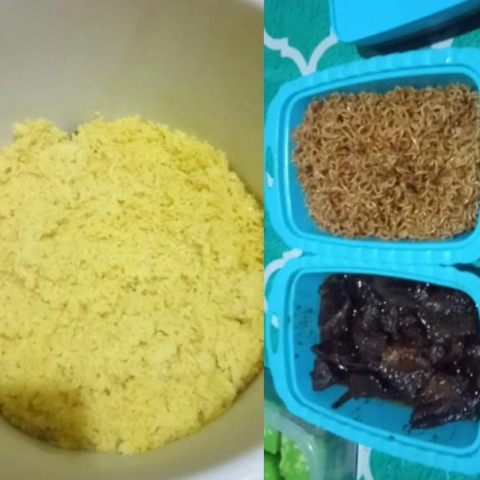 TERSEDIA NASI KUNING DENGAN LAUK PAUK IKAN MASAK KERING KAYU(NASI KUNING TELUR 15.000 DAN NASI KUNING IKAN SAMA TELUR 20.000)
